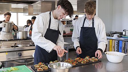 Op maandag 17 maart trapten mbo-studenten en vmbo-leerlingen van Het Perron de Week van de Circulaire Economie af met een bijzondere masterclass ‘Werken met restvoedsel’. Onder leiding van chef-kok Paula Middendorp gingen zo’n veertien derdejaars studenten van de koksopleiding en vier leerlingen van het vmbo aan de slag met voedselrestanten uit de regio. De gerechten die zij bereidden, werden geserveerd tijdens een lunch voor vrijwilligers van Stadsakkers Veenendaal.